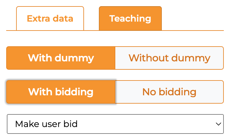 Minibridge, απλή επίδειξη ενός συμβολαίου ή των αγορών, κανονικό μπριτζ που περιλαμβάνει συγκεκριμένες αγορές που πρέπει να αναπαραχθούν από τον μαθητή, επιβεβλημένη αρχή του παιχνιδιού…